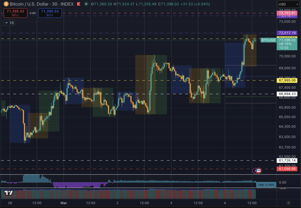 • Whether price holds above the middle of the $60,000–$70,000 band.