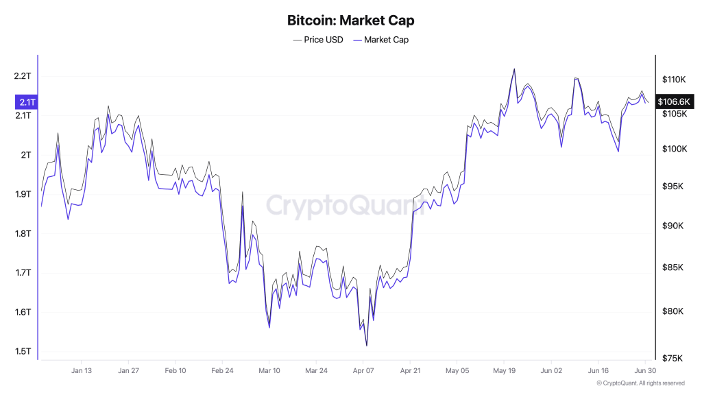 Graph showing Bitcoin’s market cap from Jan. 1 to June 30, 2025 (Source: CryptoQuant)
